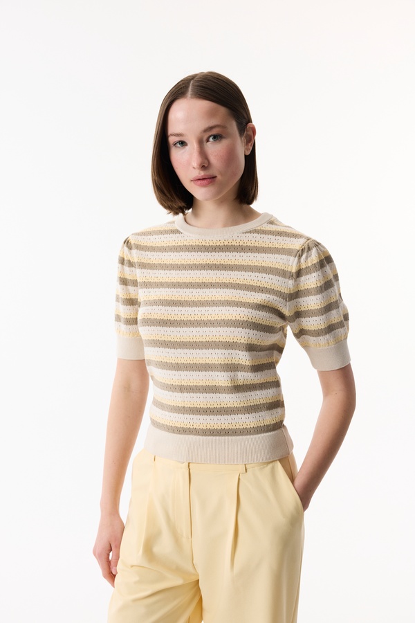 ÇİZGİLİ BİSİKLET YAKA KISA KOLLU KAZAK