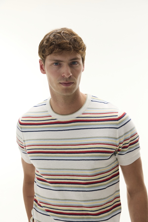ÇİZGİLİ BİSİKLET YAKA KISA KOLLU TRİKO KAZAK