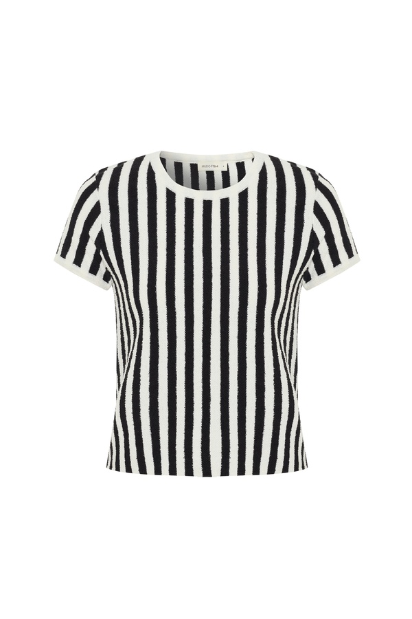 Zamansız çizgi deseni triko yumuşaklığıyla bir araya geliyor. Çizgili bisiklet yaka kısa kollu triko kazak ile hem spor, hem şık kombinlerinizi tamamlayabilirsiniz. Trikonun eşsiz dokusu ile bir araya gelen kazak, kısa kollu olmasıyla mevsim geçişlerinden yazın sıcak akşamlarına her anınızda size eşlik edecek. Kısa şortlarla ya da keten pantolonlarla kombinleyebilirsiniz.