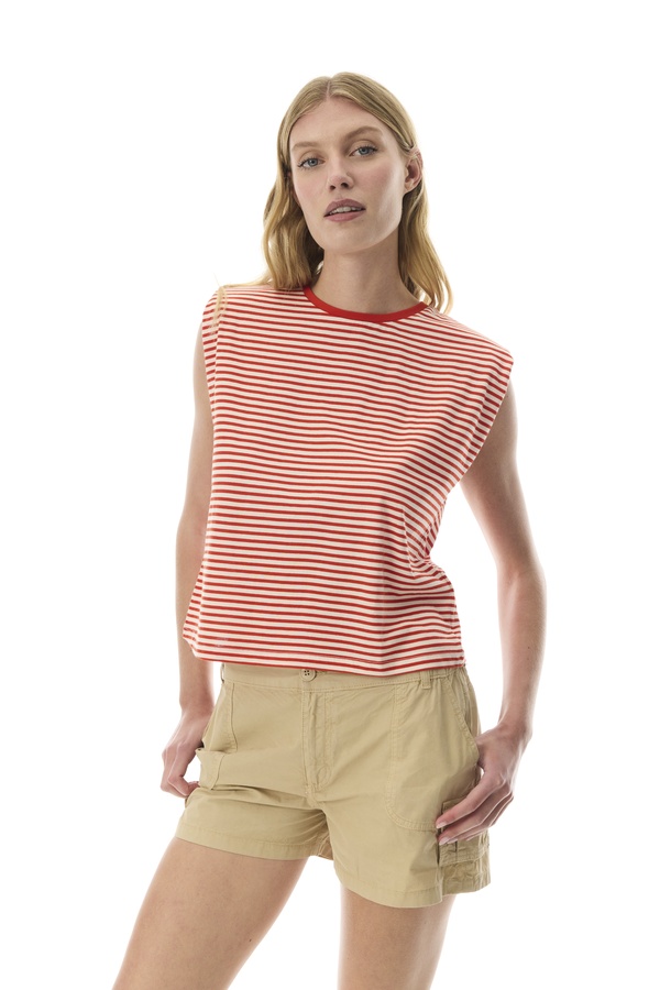 ÇİZGİLİ BİSİKLET YAKA KOLSUZ T-SHIRT