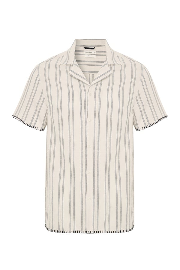 ÇİZGİLİ DİKİŞ DETAYLI RESORT YAKA KISA KOLLU GÖMLEK