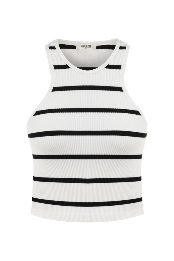 Siyah beyaz çizgileriyle hem günlük ve hem de ofis şıklığına dahil edebileceğin bluz, halter yaka tasarımıyla modern kombinlerine eşlik edecek. Bol paça kumaş pantolon ile kombinleyebileceğin bluz Mudo'da.