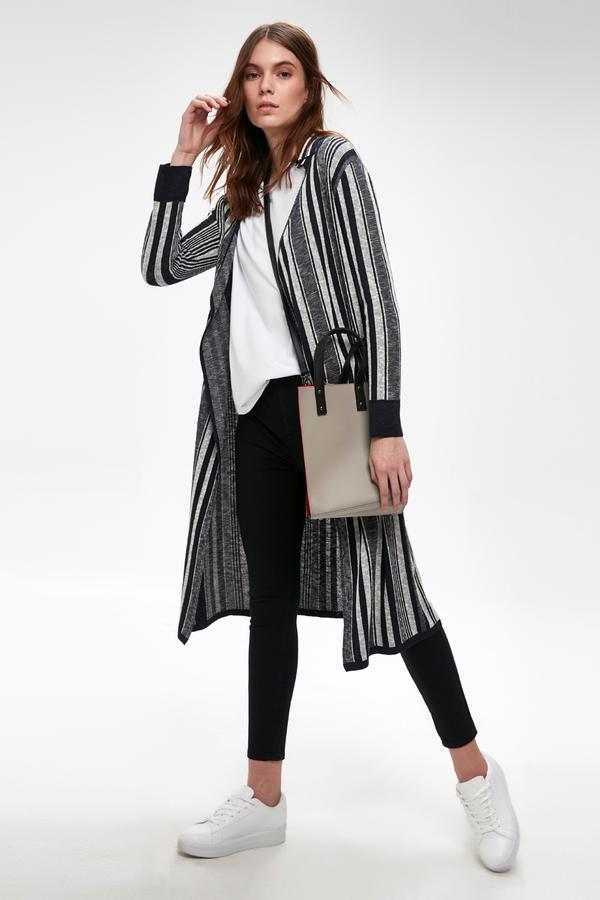 Kendine özgü stiliyle şık bir duruş sergileyen çizgili hırka, günlük kombinlerinizin vazgeçilmezi olacak. Severek giyeceğiniz bu ürünü gardırobunuza eklemeyi unutmayın.