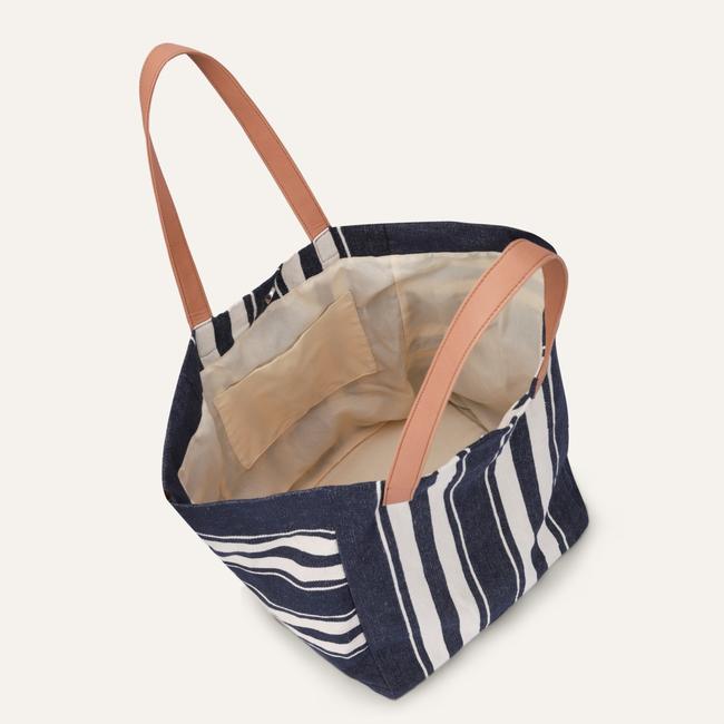 Hem plaj, hem günlük şıklığına dahil edebileceğin shopper çanta çizgili tasarımı ve suni deri saplarıyla modern bir yorum katıyor. 1 adet iç cebe sahip ürünü hem plaj çantası hem de el çantası olarak kullanabilirsin.