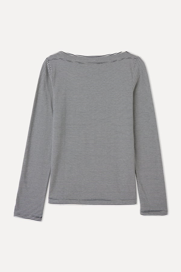 ÇİZGİLİ KAYIK YAKA UZUN KOLLU T-SHIRT