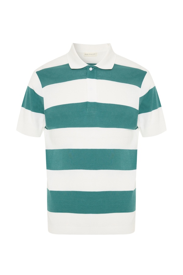 ÇİZGİLİ POLO YAKA KISA KOLLU KAZAK