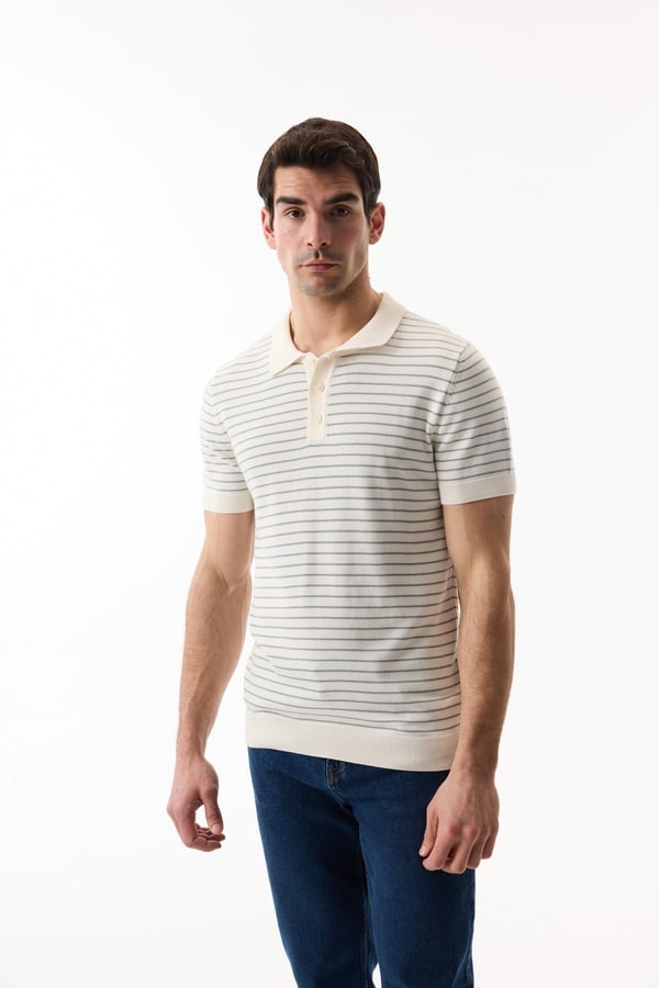 ÇİZGİLİ POLO YAKA KISA KOLLU TRİKO KAZAK