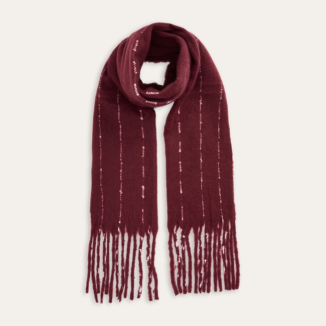 Hacimli ve dolgun yapısı, soğuk günlerde sıcaklık sağlarken, yüzeyi teninizde hoş bir his bırakır. Atkı boyunca dikey olarak uzanan çizgili desenler, tasarıma dinamik bir görünüm kazandırır. Her iki ucunda yer alan dolgun püskül detayları ise bu modern görünümü tamamlar. Bu çok yönlü aksesuarı, kabanlarınızın veya trikolarınızın üzerine alarak sade kombinlerinize hareket katabilir ve görünümünüzü zenginleştirebilirsiniz.