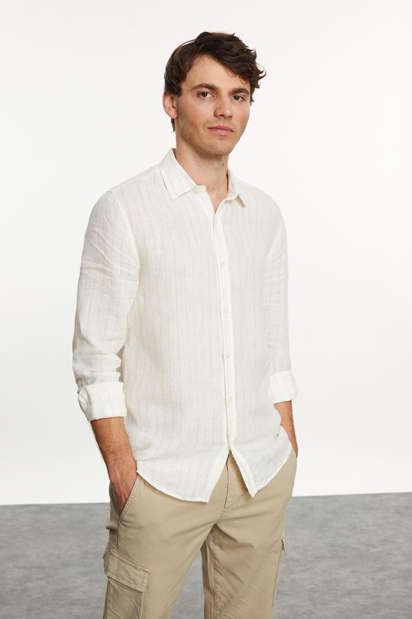ÇİZGİLİ REGULAR FIT KETEN GÖMLEK
