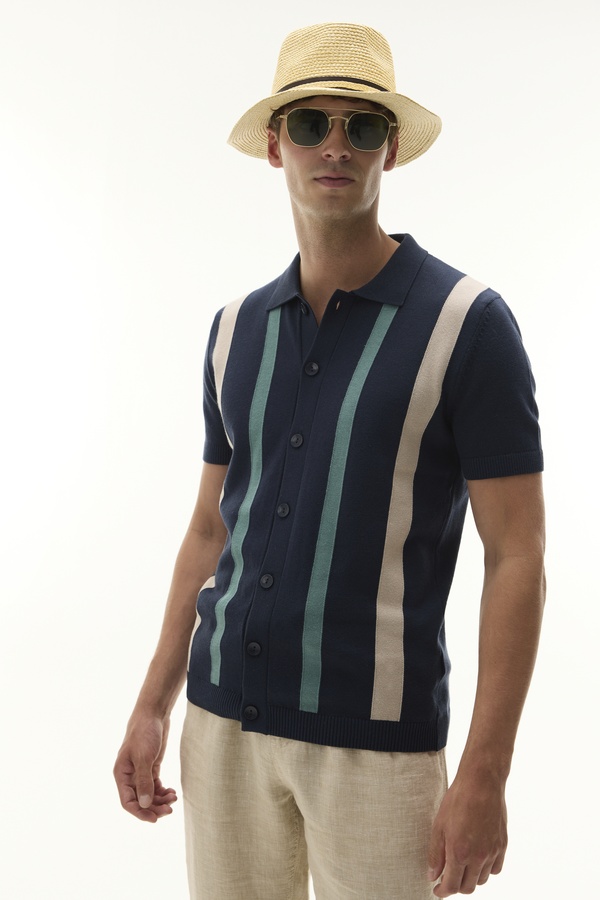 ÇİZGİLİ REGULAR FIT KISA KOLLU TRİKO GÖMLEK