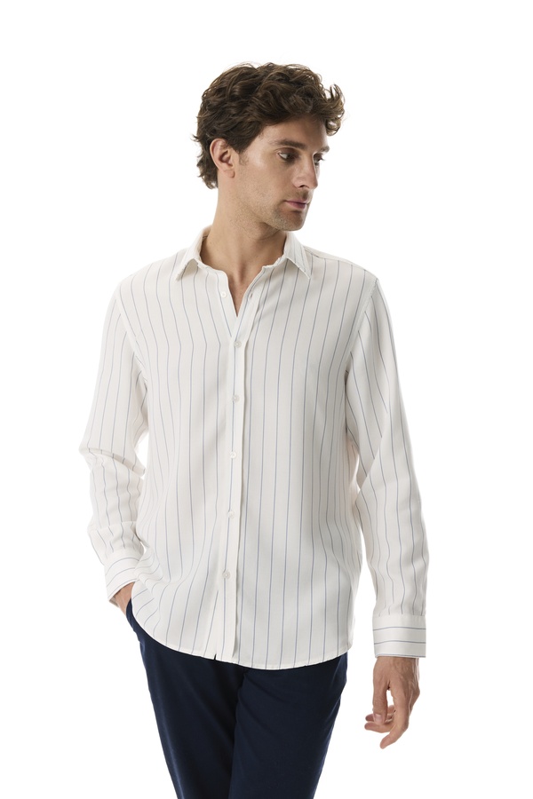ÇİZGİLİ REGULAR FIT LİYOSEL UZUN KOLLU GÖMLEK