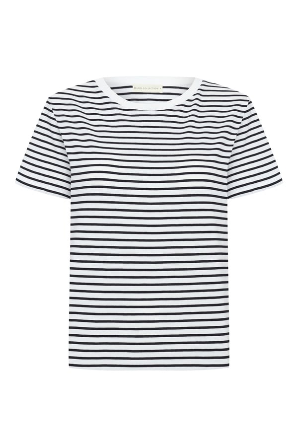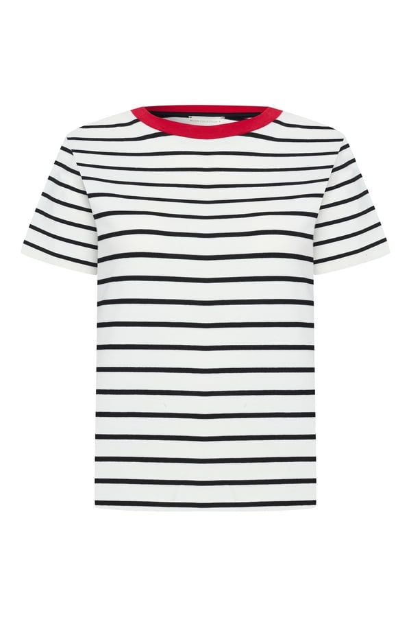 ÇİZGİLİ BİSİKLET YAKA KISA KOLLU T-SHIRT BEYAZ
