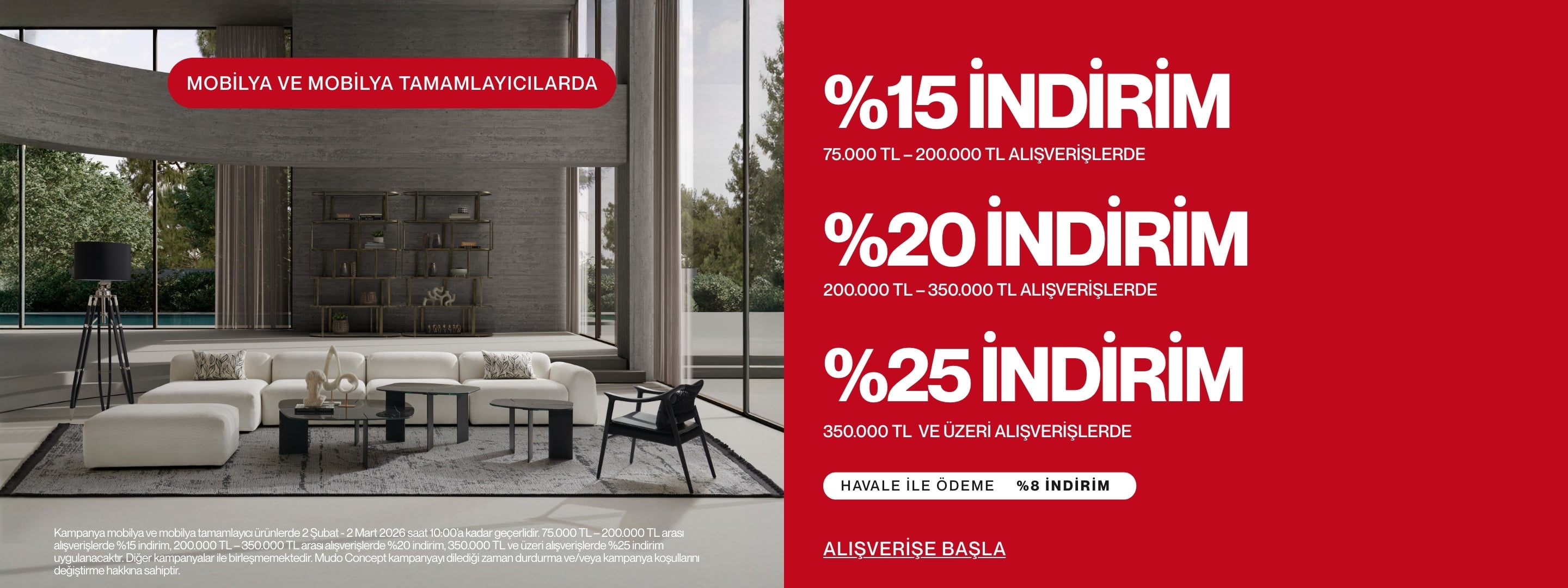 MOBİLYA HARİCİ MUDO CONCEPT ALIŞVERİŞLERİNİZDE 1500 TL VE ÜZERİ ÜCRETSİZ KARGO!