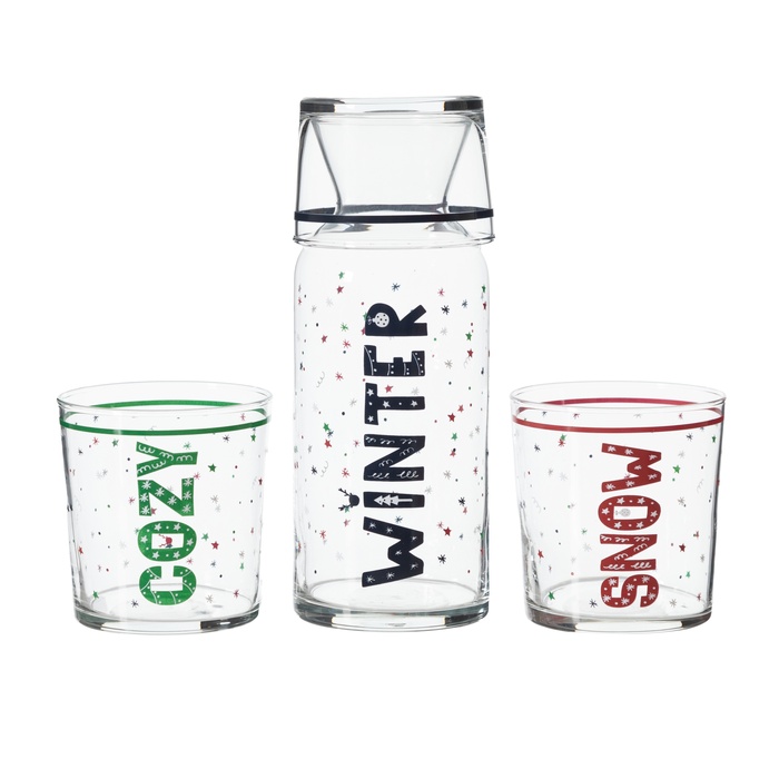 Kış temalı tasarımıyla size su içmeyi sevdirecek Cozy İçecek Seti, yüksek kaliteli baskısıyla ister kendinize, ister arkadaşlarınıza harika bir hediye seçeneği olacak. İki bardak ve bir başucu sürahisinden oluşan set ile su ve içecek içmek artık daha keyifli hale gelecek.