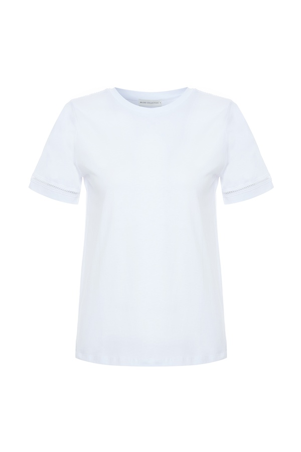 DANTEL DETAYLI BİSİKLET YAKA T-SHIRT