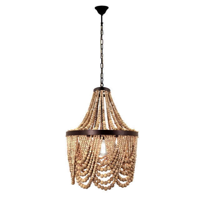 Katmanlı ahşap boncuklar, ışığın yumuşak bir şekilde süzülmesini sağlayarak ortama sıcak bir parlaklık katar. Tasarımda bej ve kahverenginin doğal tonları, askı mekanizmasındaki metalik zincir detayıyla dengelenir. Ampulün açıkta bırakıldığı bu stil, rustik ve endüstriyel tasarım öğelerini bir araya getirir. Darion avize, salon, yemek odası veya yatak odasında dekoratif bir odak noktası olarak öne çıkar.