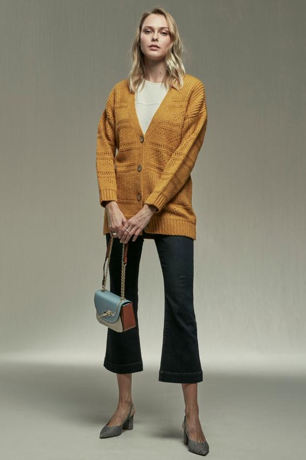 Mudo ile konfor ve şıklık bir arada. Kış mevsiminin olmazsa olmazı triko hırka modelleri arasında v yaka, düğmeli triko hırkayı pantolonlar ile kombinleyebilir, gold aksesuarlar ile şıklık katabilirsin.