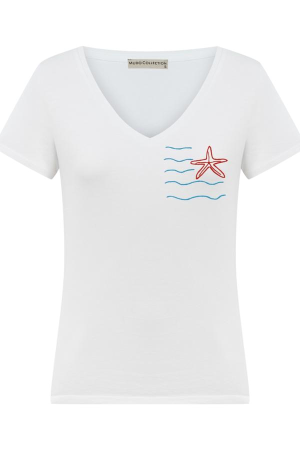 DENİZ YILDIZI BASKILI V YAKA T-SHIRT