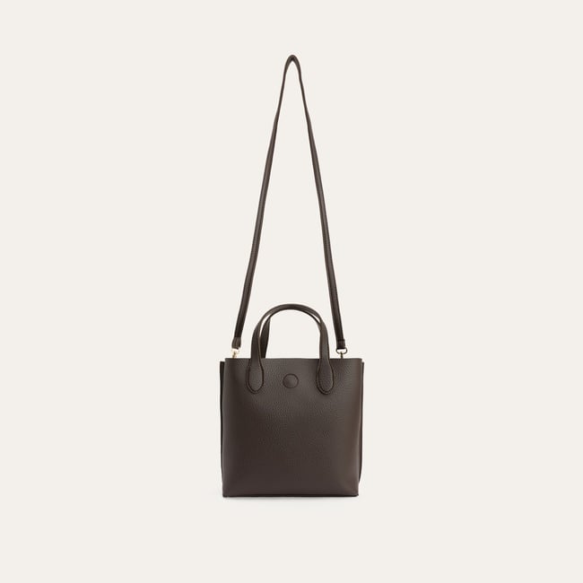 Klasik rengi ve askı bağlantı noktalarındaki altın tonlu detaylarıyla dikkat çeken çanta, her kombine uyum sağlar. Hafif pürüzlü yüzeyi tasarıma derinlik katarken, ön yüzündeki dairesel detay ise minimalist kimliğini öne çıkarır. Uzun ve ince askısı sayesinde omuzda veya çapraz olarak taşınabilir; yuvarlak üst tutma sapı ise elde taşıma için alternatif sunar.