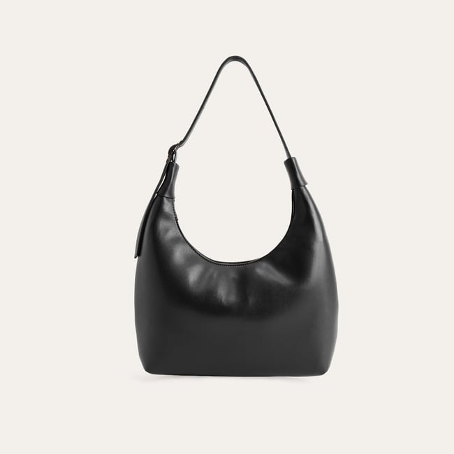 Yarım ay şeklindeki modern silueti, pürüzsüz ve parlak dokusuyla öne çıkar. Temiz dikiş detayları, çantanın özenli işçiliğini vurgularken, ayarlanabilir omuz askısı kişisel tercihinize göre kullanım kolaylığı sağlar. Hem klasik hem de spor kombinlerle uyum sağlayan bu zamansız parça, gardırobunuzun önemli aksesuarlarından biri olacaktır.