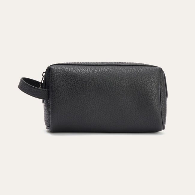 Siyah rengi ve pürüzlü deri benzeri dokusu, çantaya hem dayanıklı hem de şık bir estetik kazandırır. Dikdörtgen formu ve net hatları, minimalist tasarımını vurgularken, gümüş renkli fermuar detayı tasarıma modern bir dokunuş ekler. Kısa taşıma sapı, kolay bir tutuş sağlarken, kişisel bakım ürünlerinizi, teknolojik aksesuarlarınızı veya günlük temel eşyalarınızı düzenli bir şekilde saklamak için ideal bir iç alan sunar. Seyahatlerde, sporda veya günlük hayatta pratik bir düzenleyici olarak öne çıkan bu çanta, kullanışlılığı ve şıklığı bir arada arayanlar için ideal bir seçenektir.