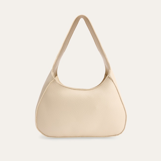 Şehirli ve modern stilin zarafetini yansıtan bu oval el çantası, sadeliğiyle öne çıkan şık bir aksesuardır. Minimalist tasarımı, özgün oval formuyla birleşerek dikkat çekici bir bütünlük oluşturur. Pürüzlü yüzeyi, çantaya hem görsel bir derinlik katar hem de yumuşak ve esnek bir kullanım hissi sunar.