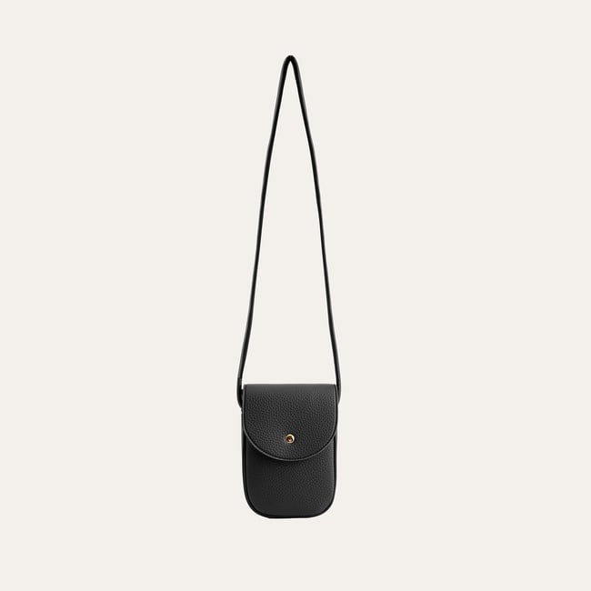 Deri görünümlü yüzeyi, çantaya kaliteli bir görünüm ve dayanıklılık katarken, yuvarlak hatlı tasarımı estetik bir bütünlük sağlar. Minimalist altın renkli düğme detayı, çantanın zarif karakterini vurgulayan şık bir dokunuştur. Ayarlanabilir ince askısı sayesinde kişisel tercihinize göre omuzda veya çapraz olarak rahatça kullanabilirsiniz. Kapaklı tasarımı ise telefonunuzu, kartlarınızı ve diğer küçük kişisel eşyalarınızı gün boyu güvenle taşımanıza olanak tanır. Farklı stillerle kolayca eşleştirilebilen bu mini çanta, hem gündüz hem de akşam kullanıma uygundur.