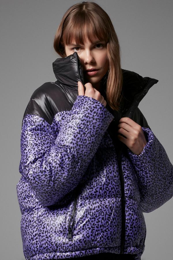 DİK YAKA LEOPAR DESENLİ PUFFER ŞİŞME MONT