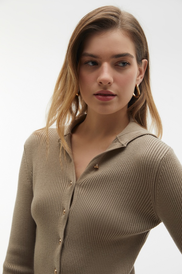 Mudo ile minimalist şıklığın öncüsü sen ol. Dik yaka triko hırka ile sade ama tarz bir görünüm elde edebilirsin. Düğmeli tasarımı ve fitilli kumaşı ile modern bir görünüm oluşturan hırka modeli, sofistike tarzın anahtarı olacak. Yaka tasarımıyla zamansız bir stil yaratmanıza yardımcı olanhırka modelini straight fit pantolonlar ya da pileli etekler ile kombinleyebilirsin.