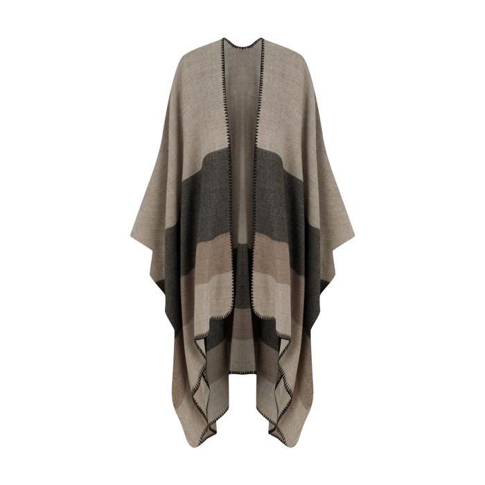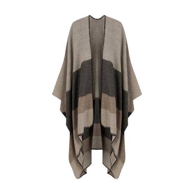 DİKİŞ DETAYLI RENK BLOKLU PANÇO ŞAL