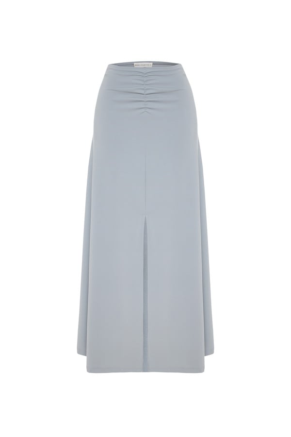 DİKİŞ DETAYLI YIRTMAÇLI UZUN ETEK
