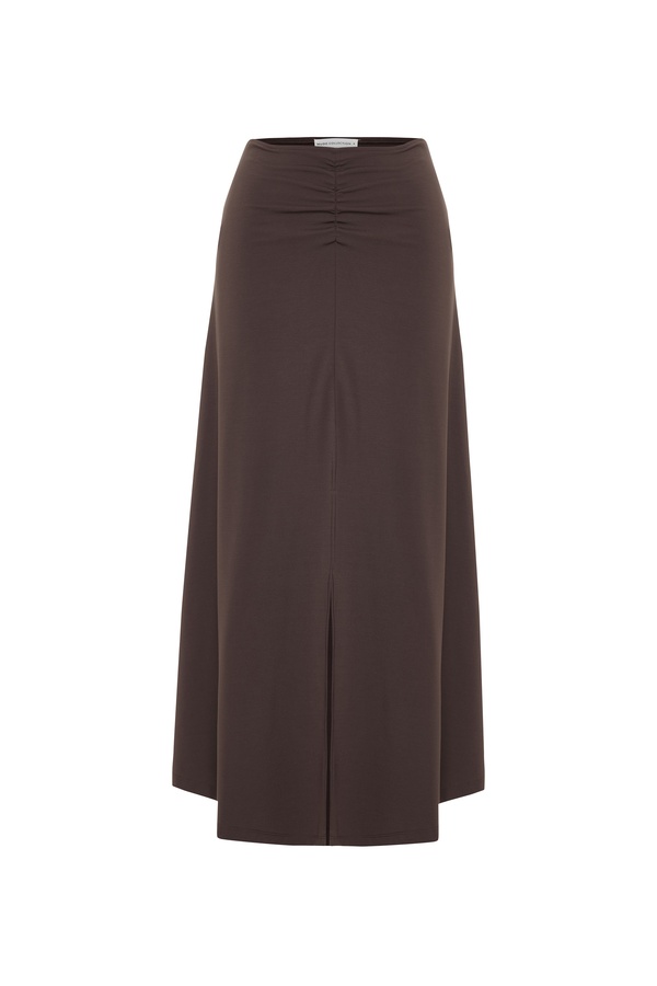 DİKİŞ DETAYLI YIRTMAÇLI UZUN ETEK