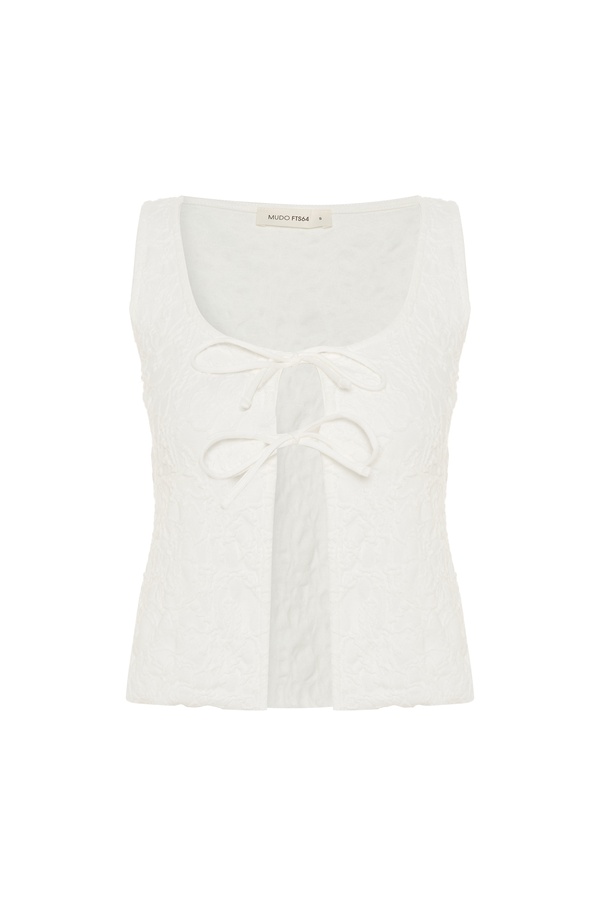 DOKULU FİYONKLU KOLSUZ BLUZ