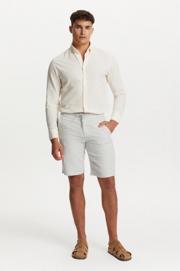 Erkek şort modellerinde ferahlığı stiline taşı. Keten karışımlı kumaşıyla rahat hissedeceğin, bağlamalı detayı ile spor görünümü sunan model yaz aylarında kurtarıcın olacak. Tekstüre dokulu kumaşıyla dikkat çeken modeli, keten gömlekler ile kombinleyebilirsin.