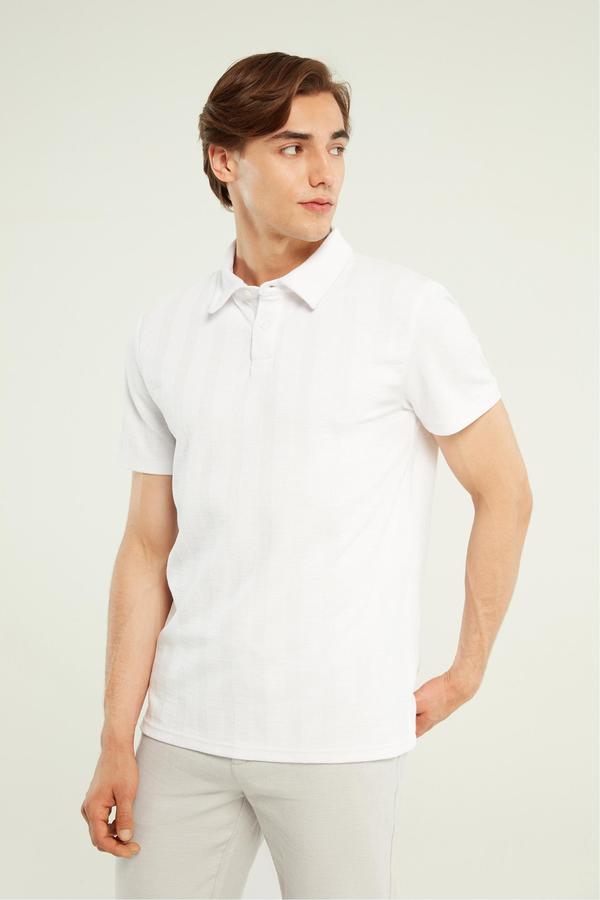 Mudo polo yaka kısa kollu tişört, günlük ofis kombinlerinin kurtarıcı parçası olacak. Pamuk karışımlı kumaştan üretilen ve dokulu kumaşıyla öne çıkan polo yaka tişörtü jean pantolon, chino pantolonlar ile kombinleyebilirsin.