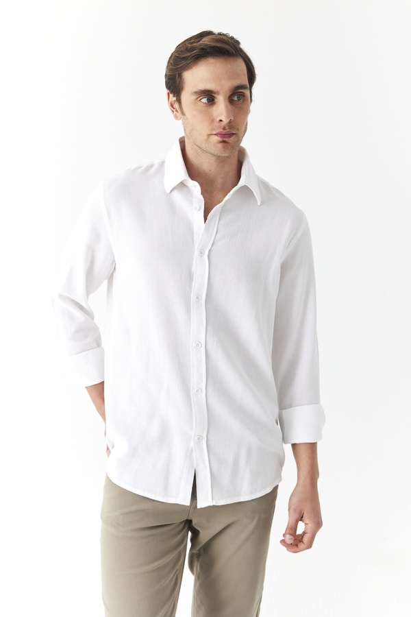 DOKULU REGULAR FIT UZUN KOLLU GÖMLEK