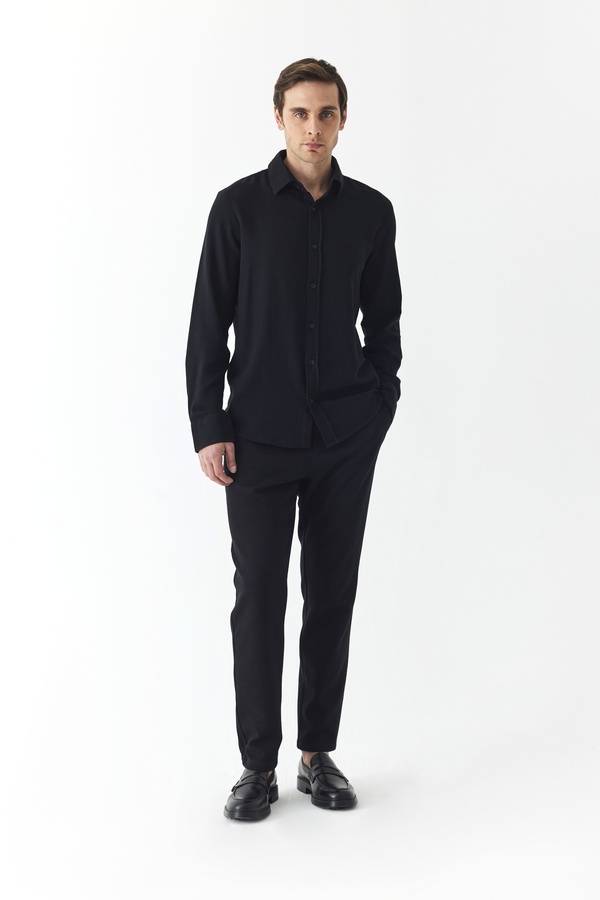 DOKULU REGULAR FIT UZUN KOLLU GÖMLEK
