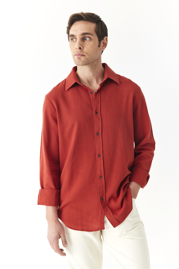 DOKULU REGULAR FIT UZUN KOLLU GÖMLEK