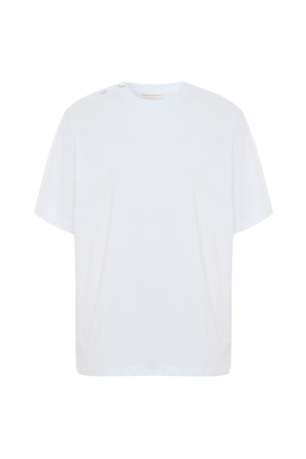 DÜĞME DETAYLI BİSİKLET YAKA T-SHIRT