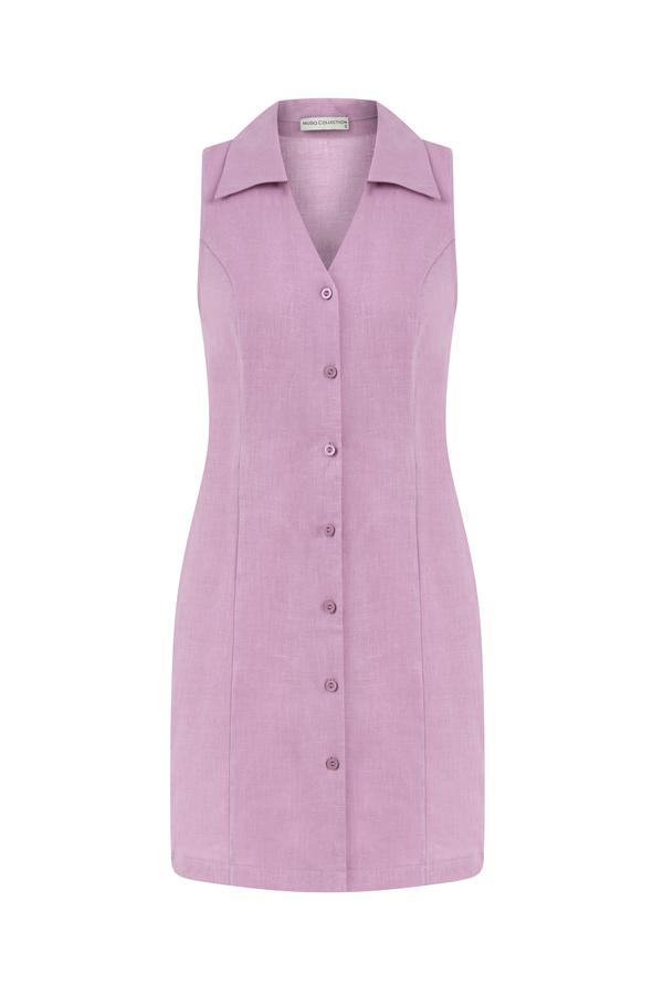 DÜĞMELİ KETEN MİNİ DAR ELBİSE