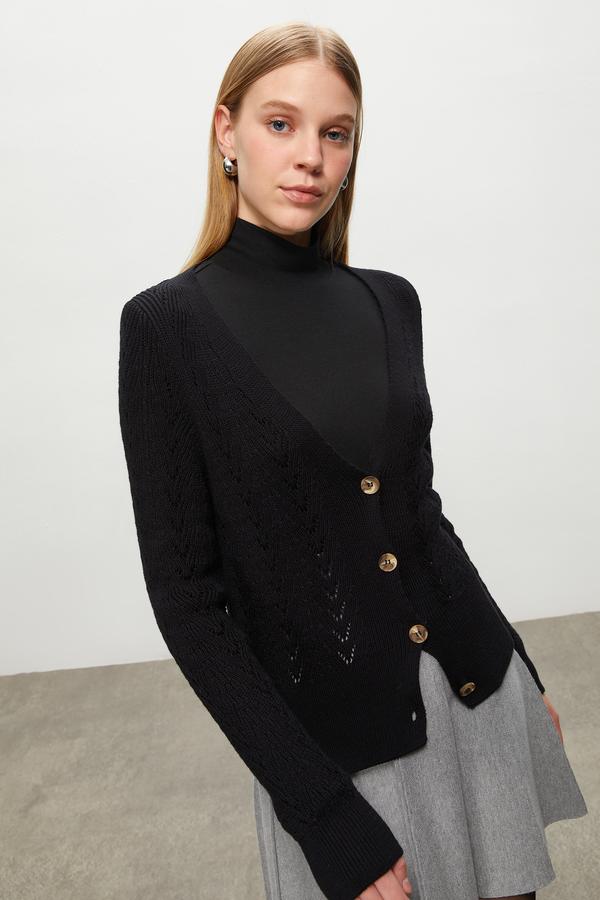 Mudo kadın triko hırka modelleri ile kombinlerini tamamla. %100 pamuklu kumaştan üretilen, düğmeli triko v yaka hırka modelini çabasız ve ofis şıklığına dahil edebilirsin. Kalın triko hırkayı jean pantolonlarınla kombinleyebilir, mudo aksesuar ürünleri ile günlük şıklığına hareket katabilirsin.