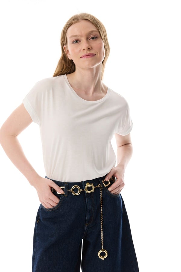 DÜŞÜK KOL SİMLİ KISA KOLLU T-SHIRT
