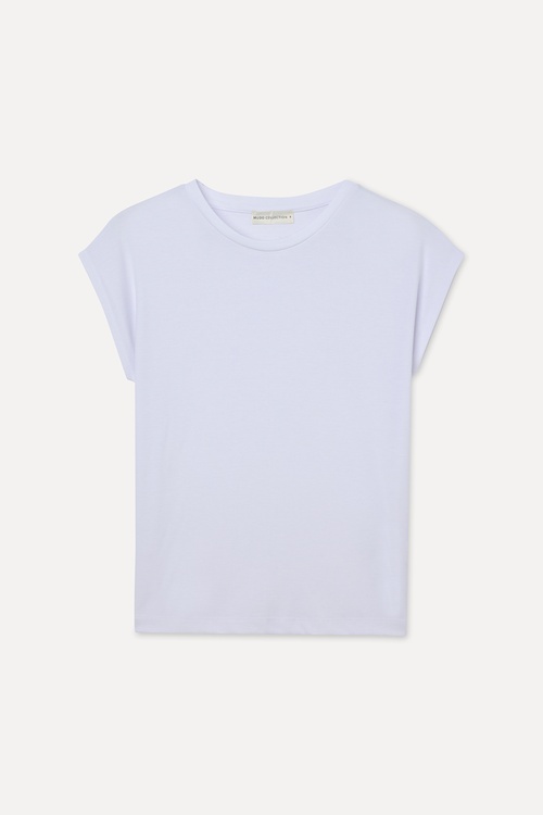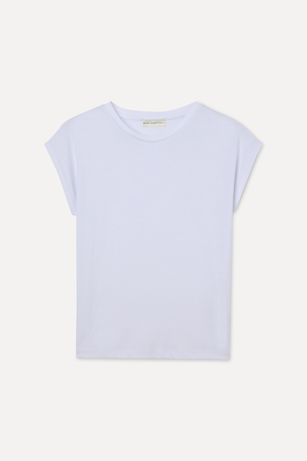 DÜŞÜK KOLLU BİSİKLET YAKA T-SHIRT BEYAZ
