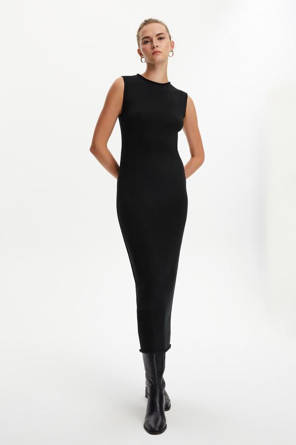 Kadın siyah elbise modelleri ile sonbahar modası Mudo'da. Gold aksesuarlar ile hareketlendirebileceğin kadın triko elbise, vücudu saran kumaşıyla silüetine zarafet katacak.