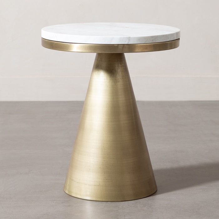 Yaşam alanlarınızda incelikli detaylara East Yan Sehpa ile yer açın. Metal malzemeyi eskitme gold rengiyle yorumlayan modelimiz, yuvarlak mermer tablasıyla tasarımına yalın ve etkili bir dokunuş katıyor.
