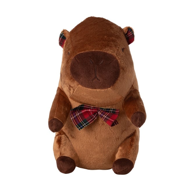 Ekose papyonlu kapibara pelüş, hem eğlenceli hem de dekoratif bir hediye ya da ev aksesuarı olarak ön plana çıkar.Minimalist detayları ve yumuşak dokusu ile yalnızca bir oyuncak olmaktan çıkarak yaşam alanlarınıza karakter ve sıcaklık katan bu ürün, hem çocuklar hem yetişkinler için sevimli bir hediye seçeneğidir.