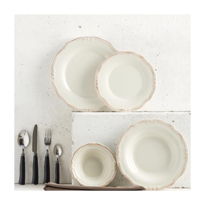 Servis Tabağı 27 cm, Çukur Tabak 24 cm, Pasta Tabağı 21 cm, Kase 15 cm, ÇKB Seti 24 Parça