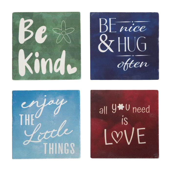 Renkli desenleriyle hem şık hem hem fonksiyonel taş malzemeden üretilmiş 10cmx10cm ölçülerindeki 4 adet kare bardak altlığının altında keçe koruması bulunmaktadır.