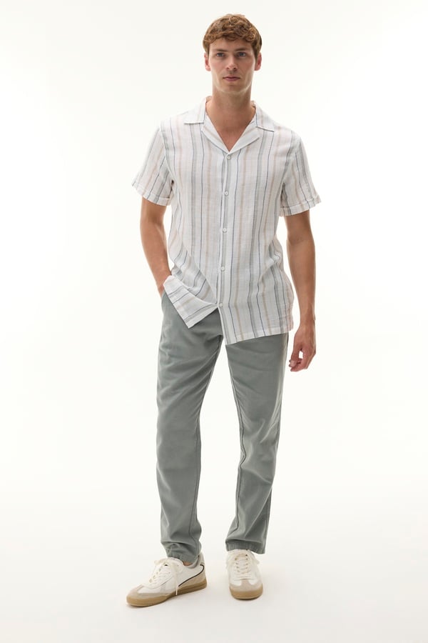STRAIGHT FIT ÇİZGİLİ CHINO ŞORT EKRU