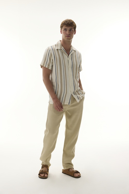 STRAIGHT FIT ÇİZGİLİ CHINO ŞORT BEJ